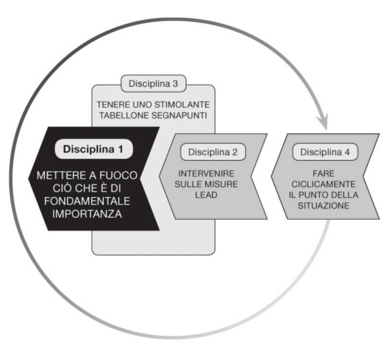 Mettere in partica la Disciplina 1 significa restringere il proprio focus a pochi obiettivi molto importanti in modo da poterli agevol-mente raggiungere nel mezzo del vortice del lavoro quotidiano.