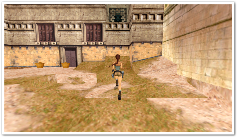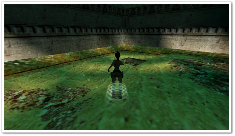 Swim back to the courtyard and climb onto a ledge and open the door with your crowbar.