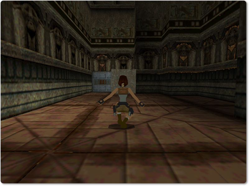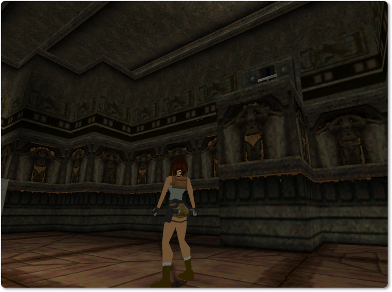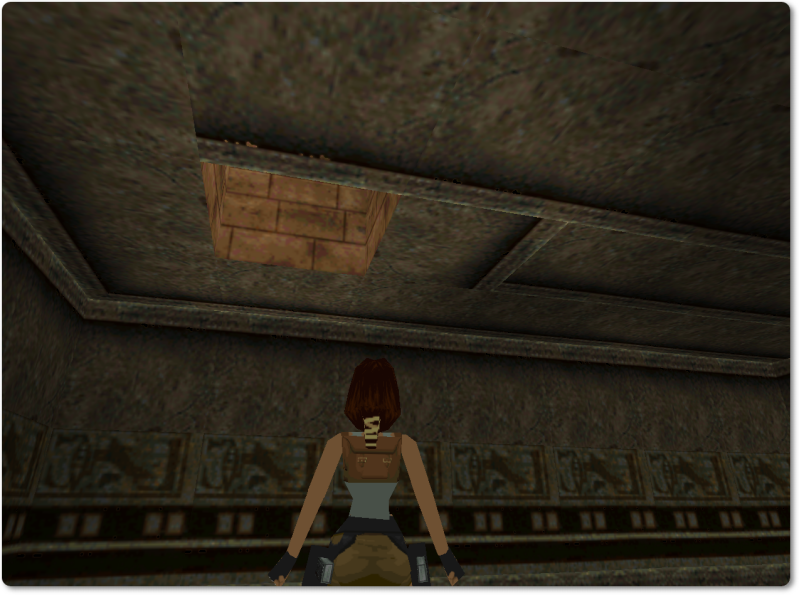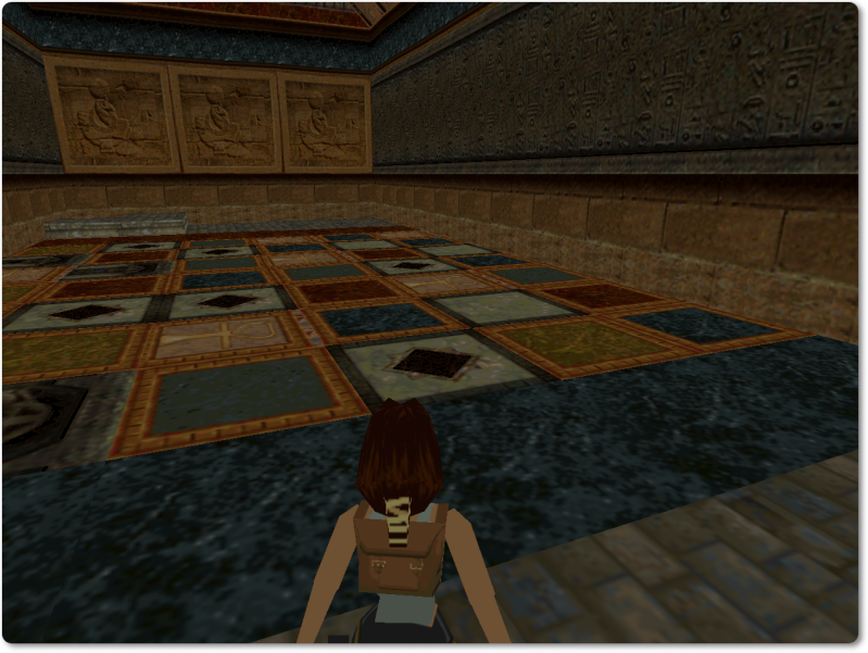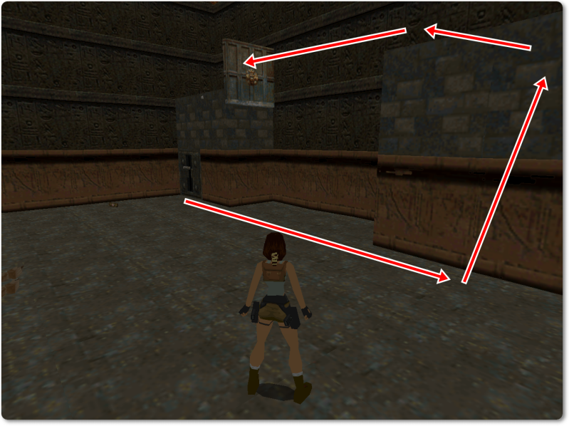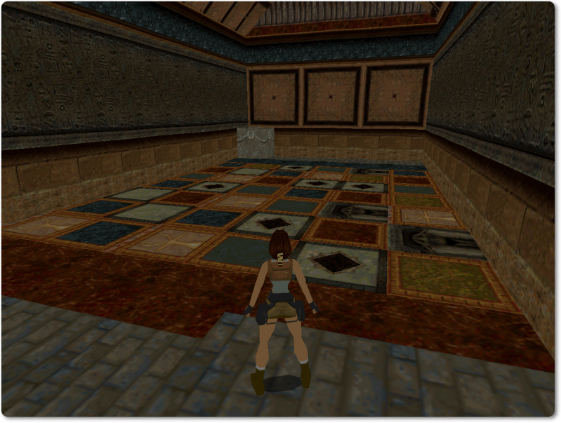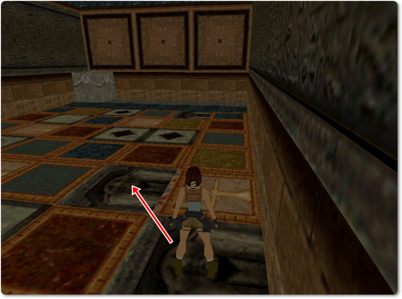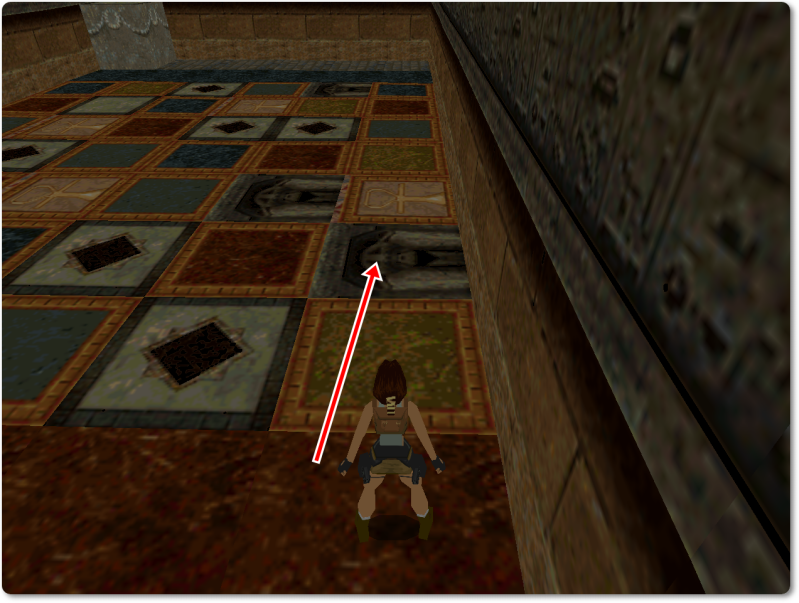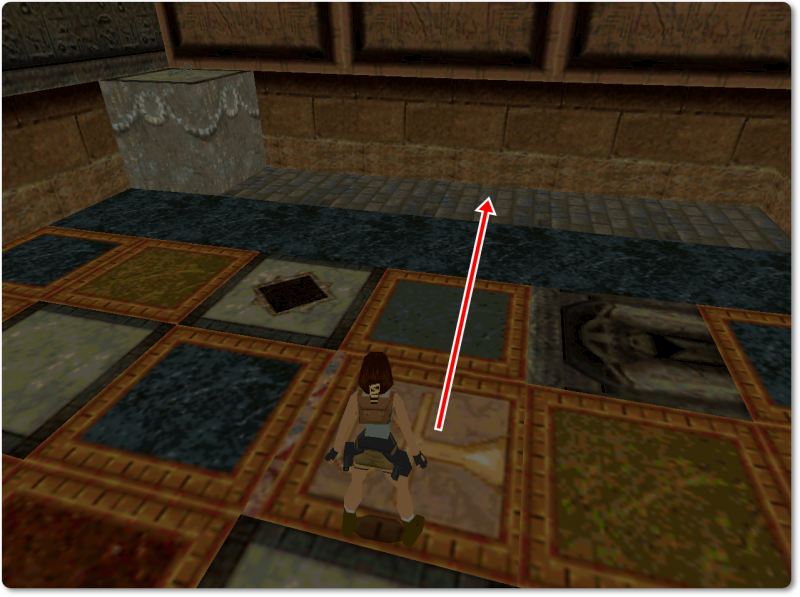 From there walk over onto the pink tile with the ankh and jump back to give Lara a running start.