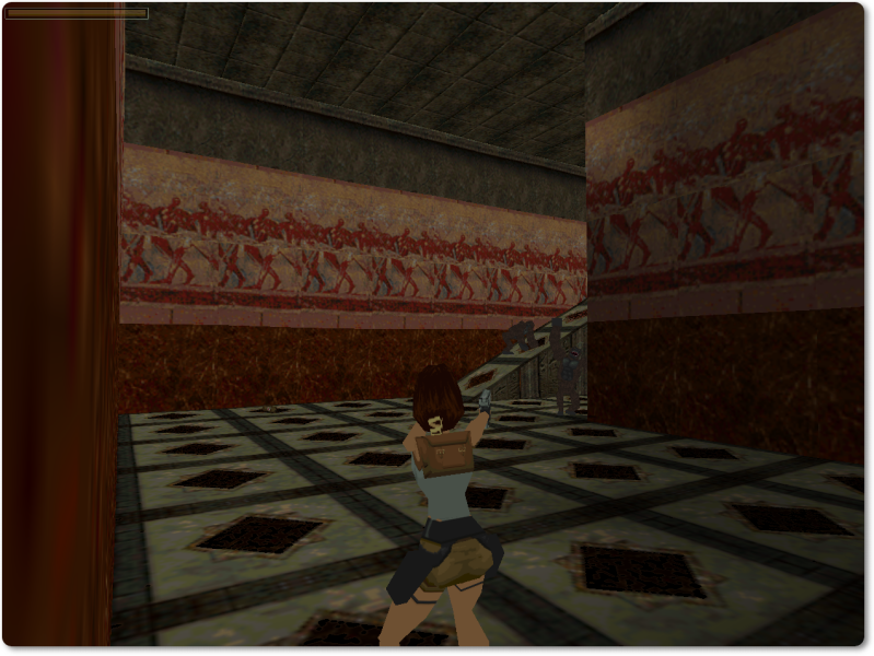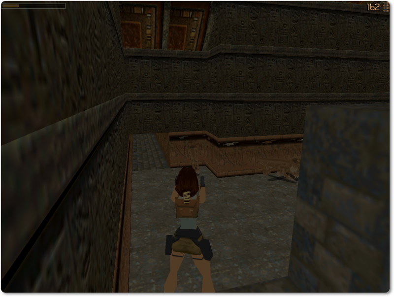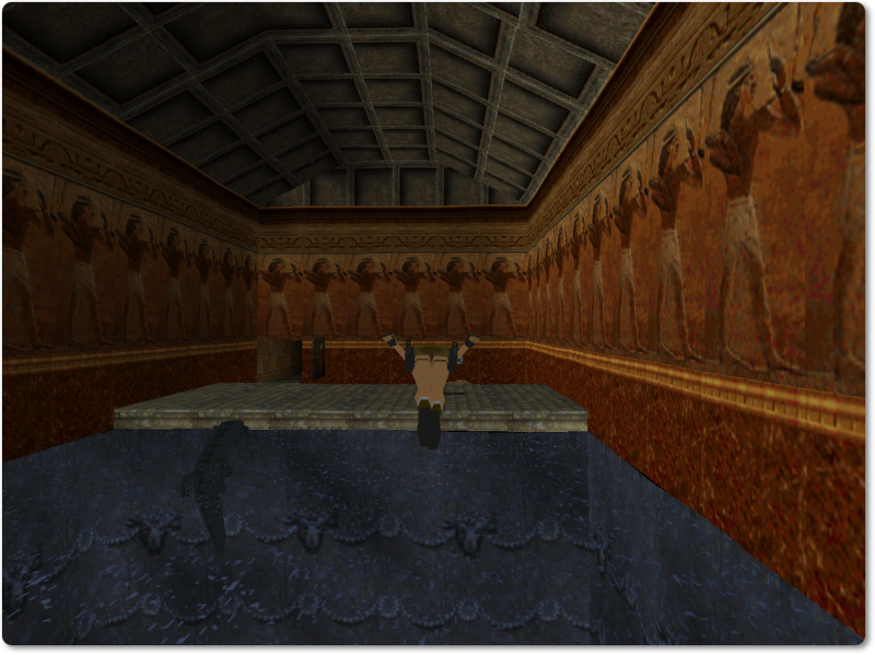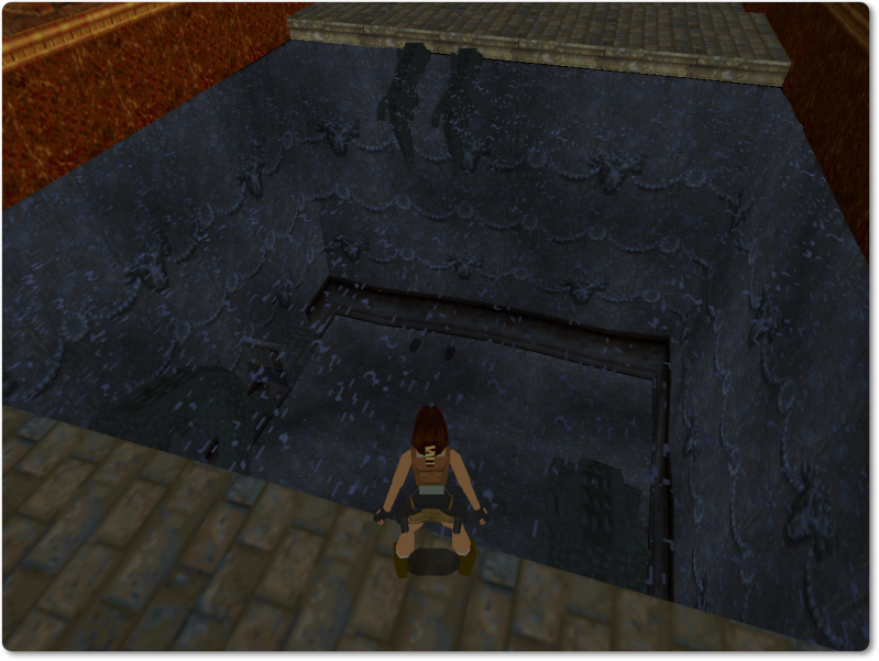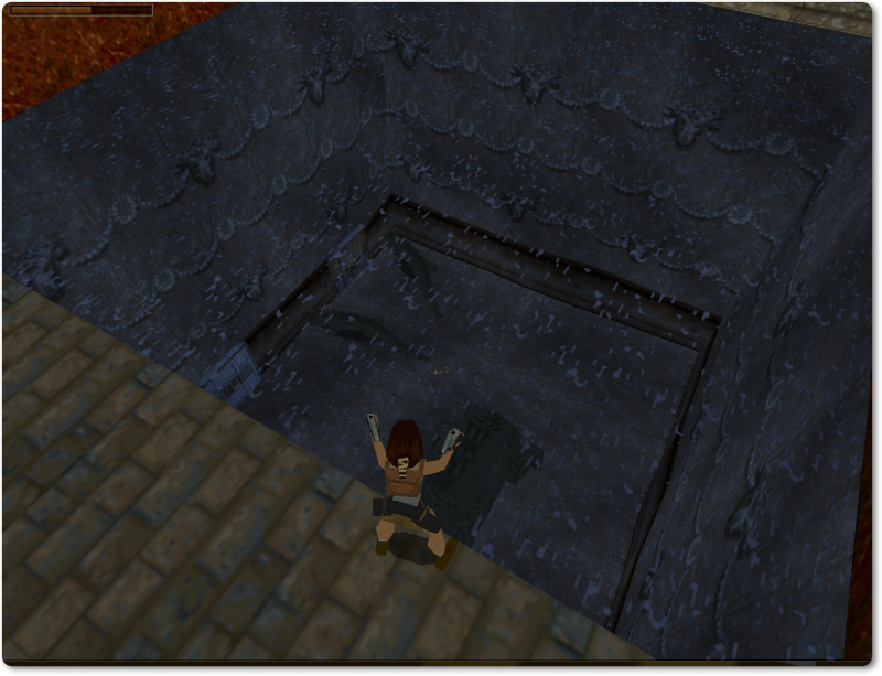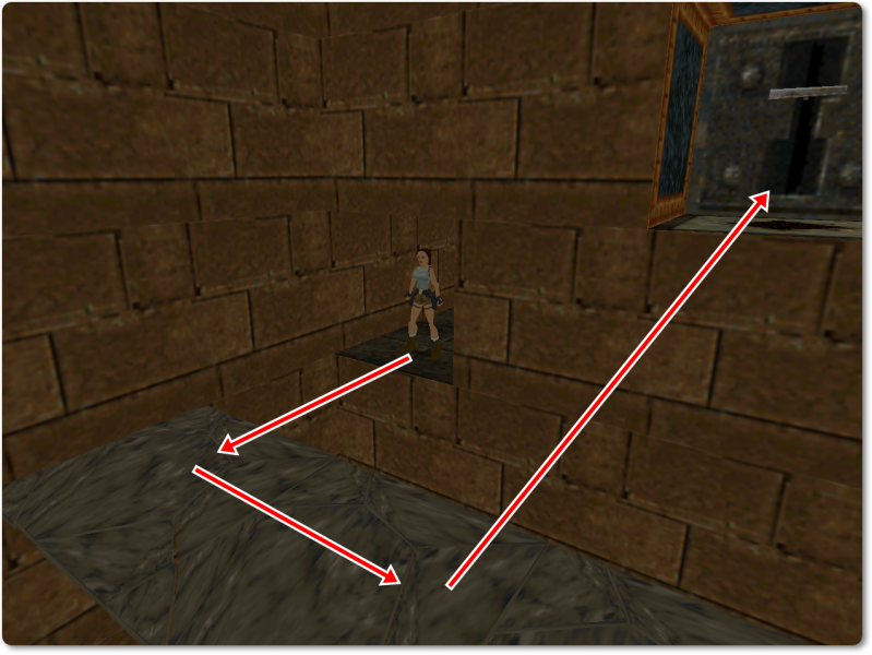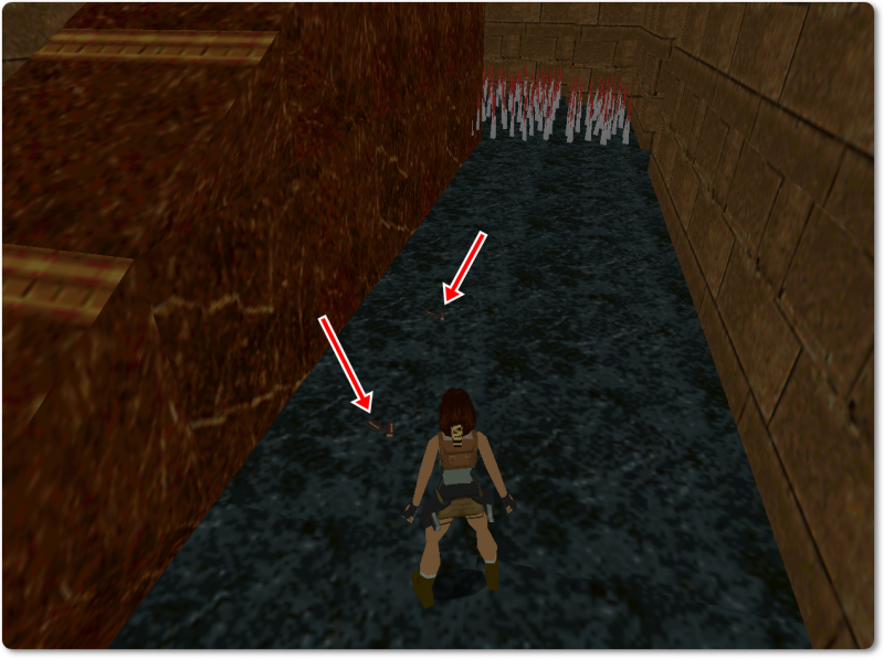 Take a running jump to the platform on the left and press Control in mid-air: this way Lara won’t lose any blood when she lands.