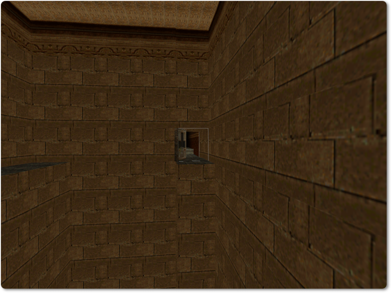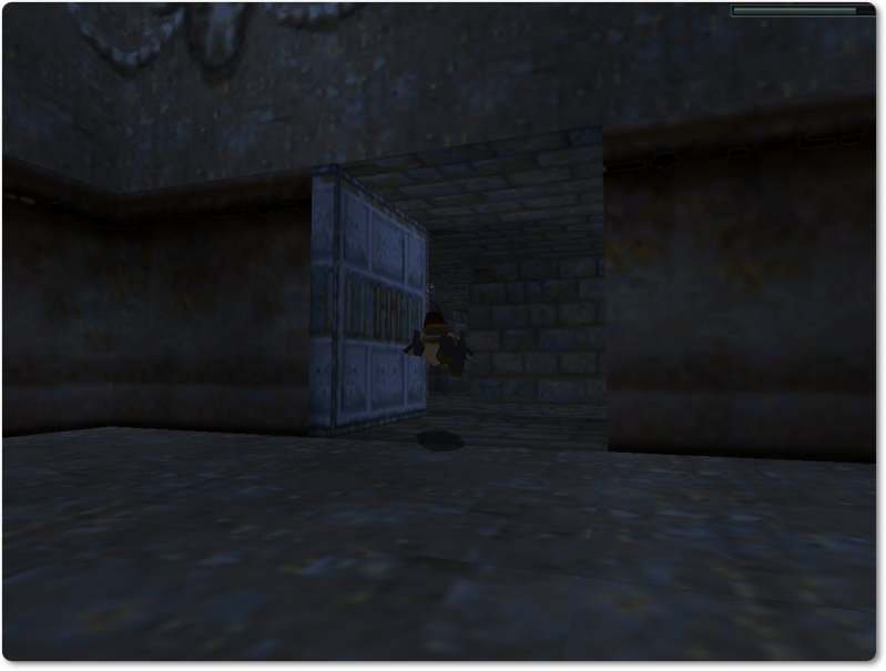 The camera angle will change briefly, showing you the next place where you need to go: the alcove in the wall, containing a switch that opens the door on the other side of the room.