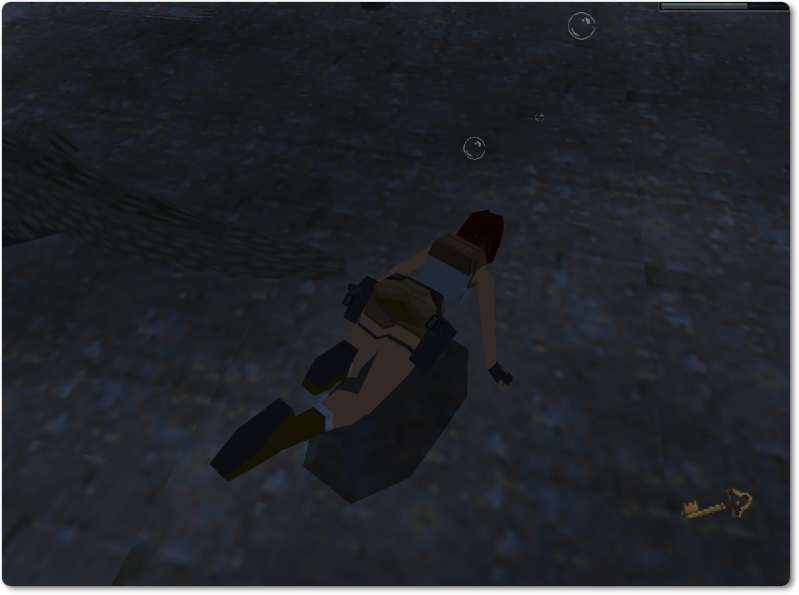 While you’re at it, swim to the two crocodiles to draw their attention. Surface and swim to the edge with the two keyholes. Kill the crocodiles and use the golden key in the golden lock.
