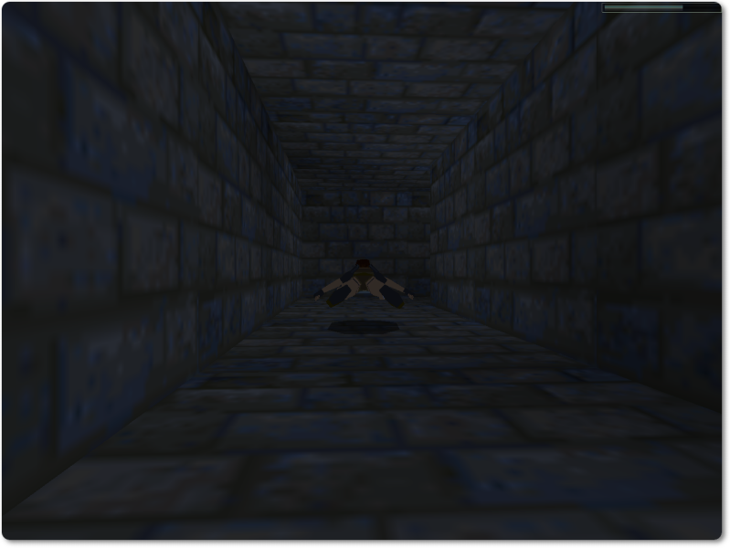 This opens one of the doors in the pool. Dive back down and traverse through the underwater passages, swimming low to avoid a giant rat that’s lurking there.