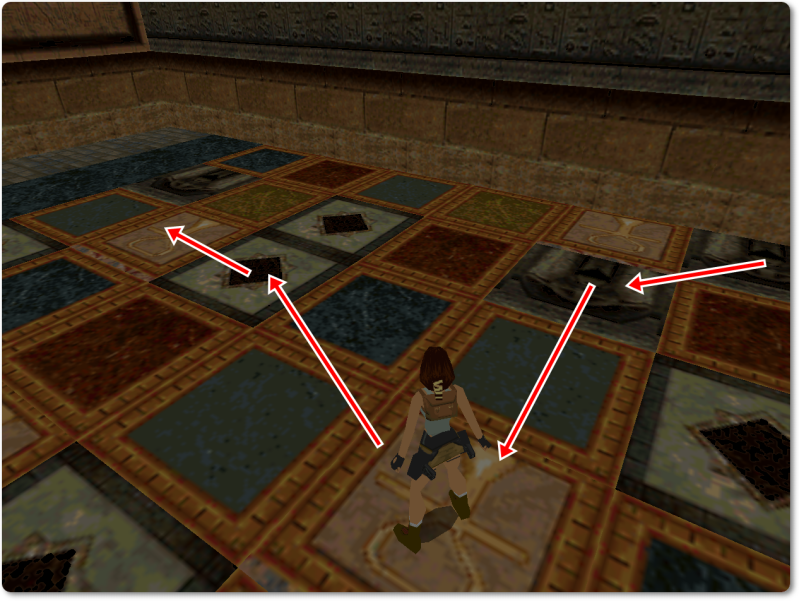 Be careful when jumping, because even touching the rim of a different tile would kill Lara.